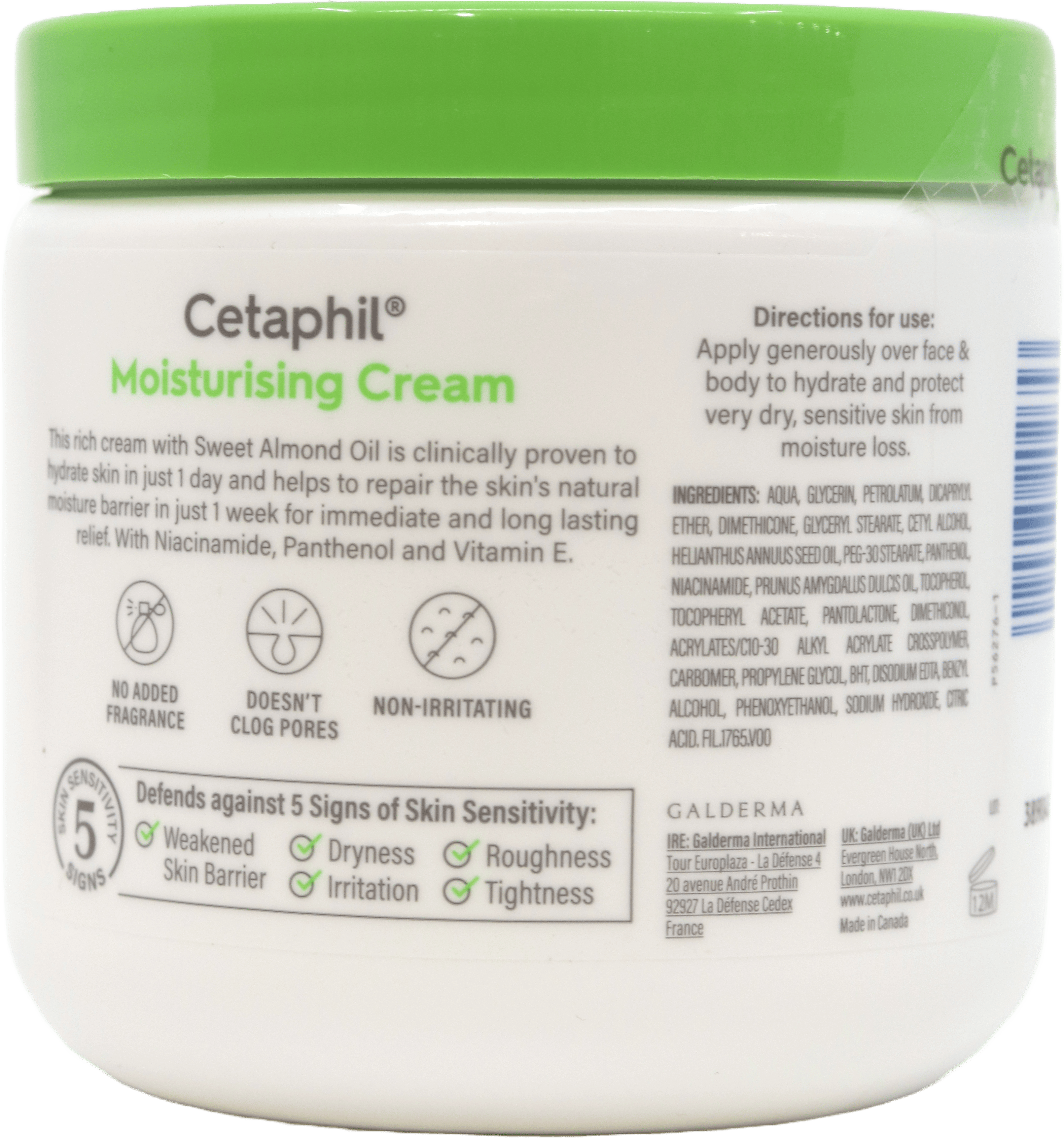 Cetaphil Moisturising Body Cream 450g is a high-class, deeply moisturising cream built for dry and sensitive skin. Recommended by skin doctors, this cream grants immediate hydration and is shown by science to bring back your skin's moisture shield in just seven days. It's friendly to all skin types, won't clog pores, and comes without any fragrance, ensuring it's kind to even the most sensitive skin types.