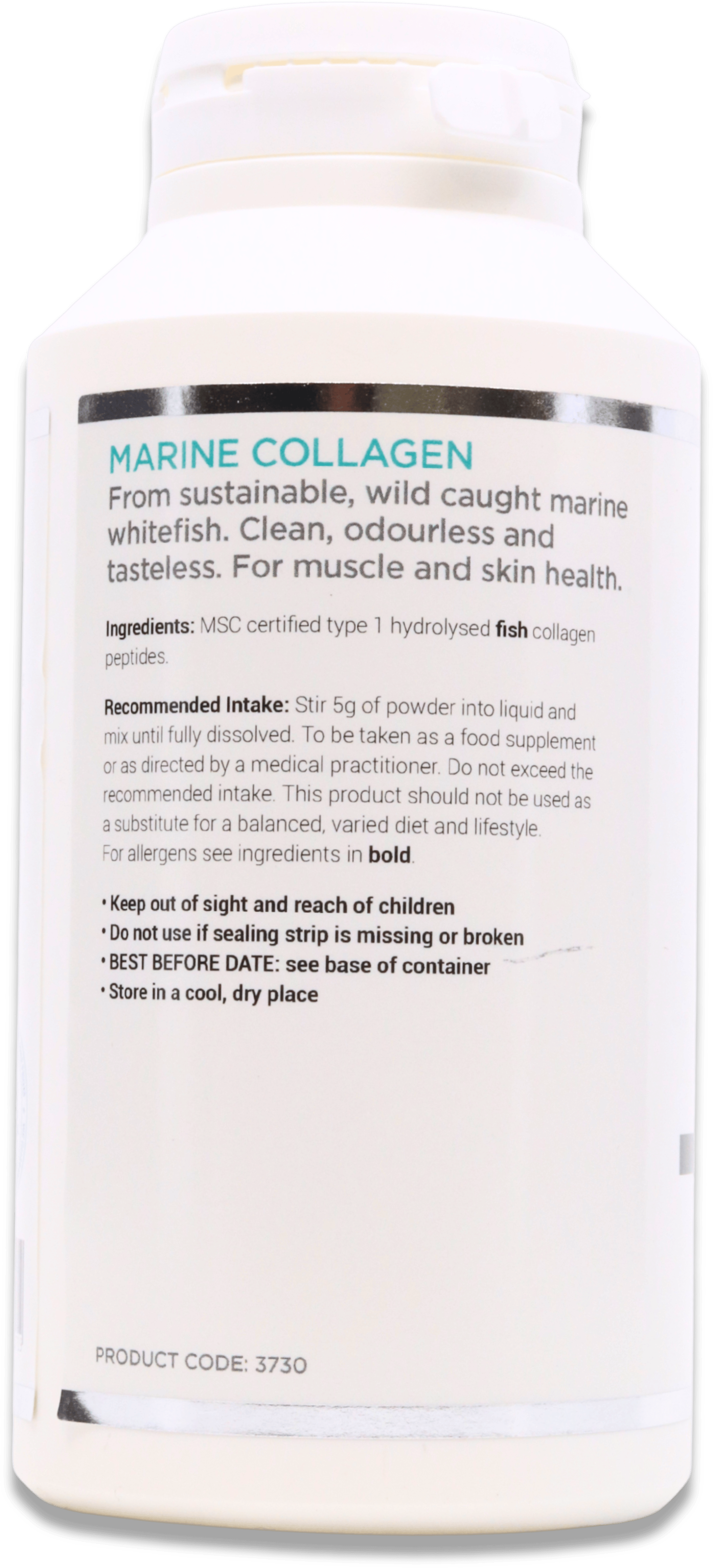 MSC certified Type 1 collagen (hydrolysed fish collagen peptides).