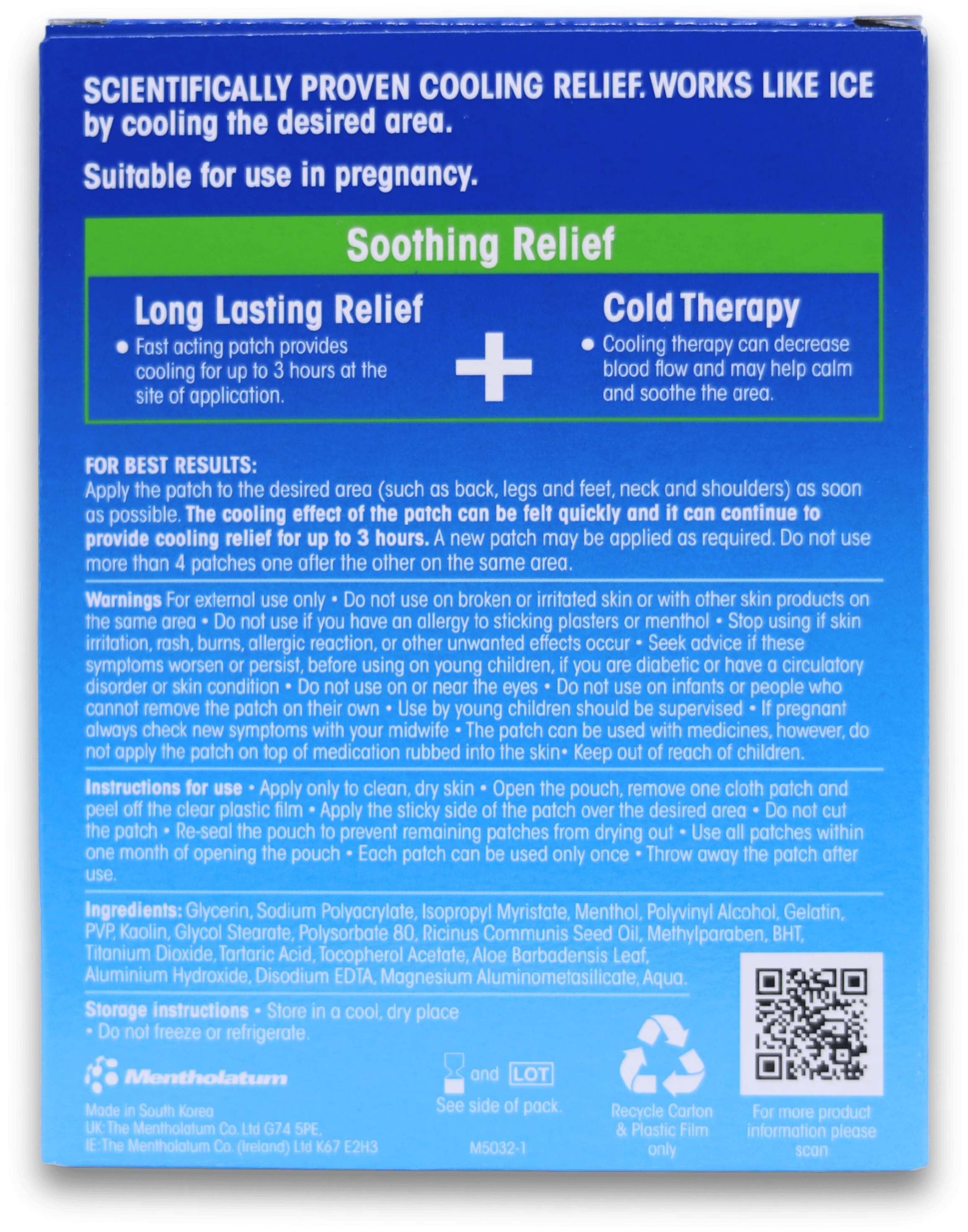 The patches provide fast-acting, long-lasting cooling relief, helping to soothe and comfort the affected area without the need for medication.