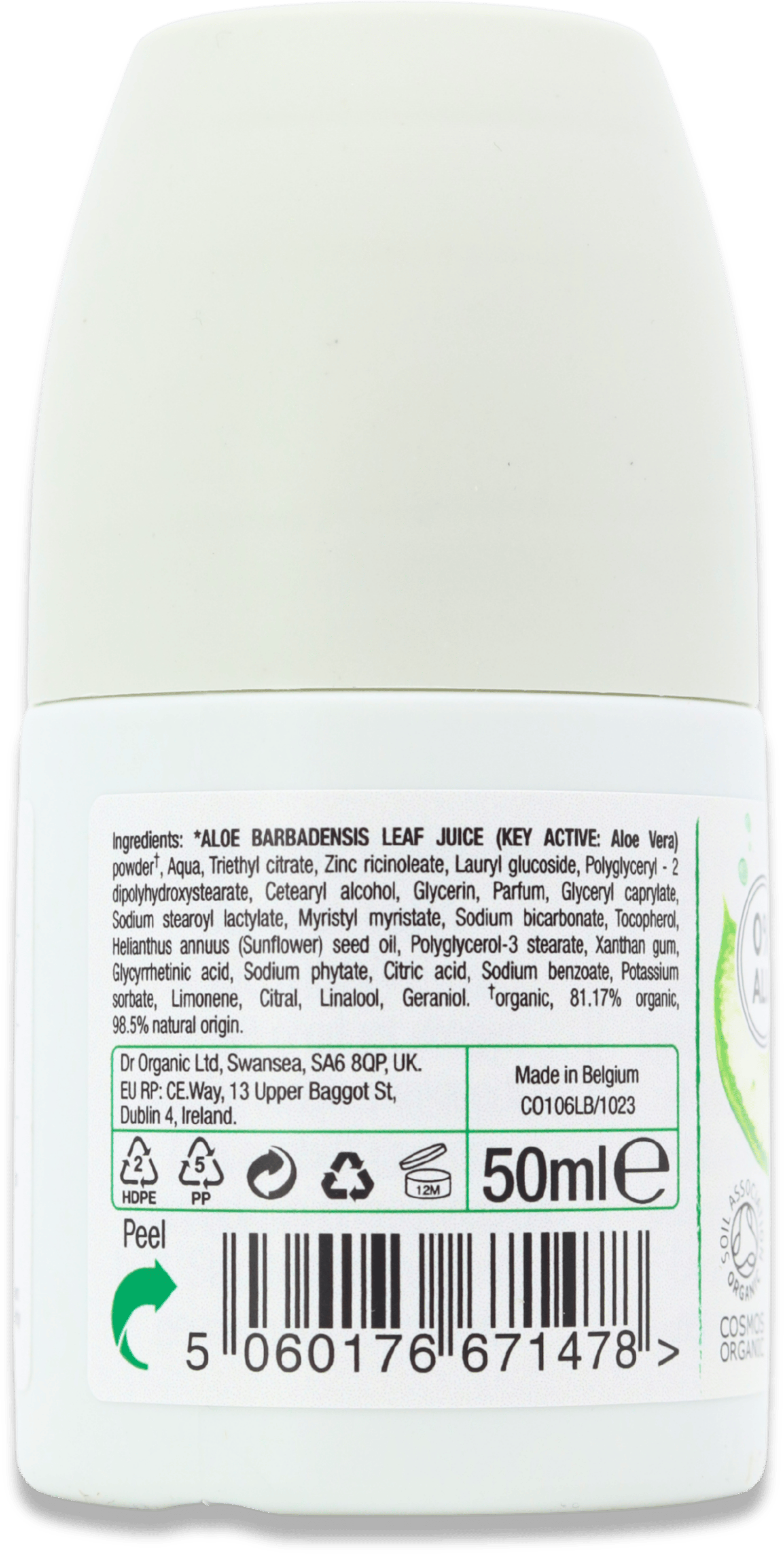 What are the main ingredients or components of Dr. Organic Aloe Vera Deodorant 50ml?