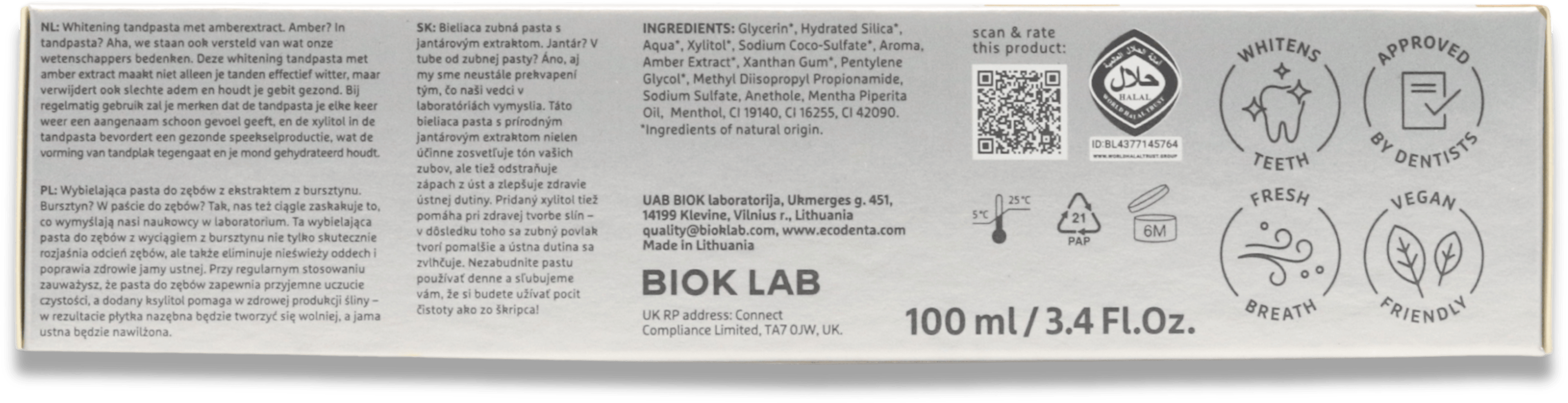 Ecodenta Refreshing Whitening Toothpaste with Amber Extract 100ml