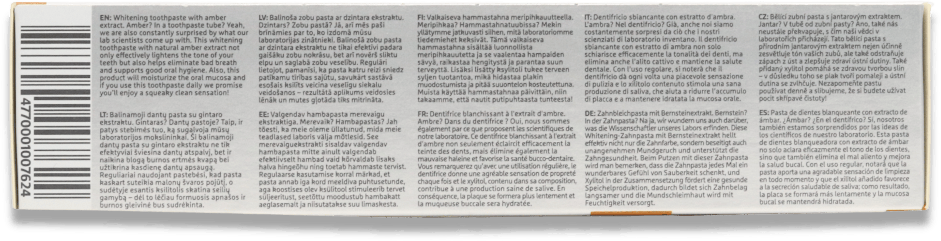 - Amber extract blend: Helps whiten teeth and gently remove stains.