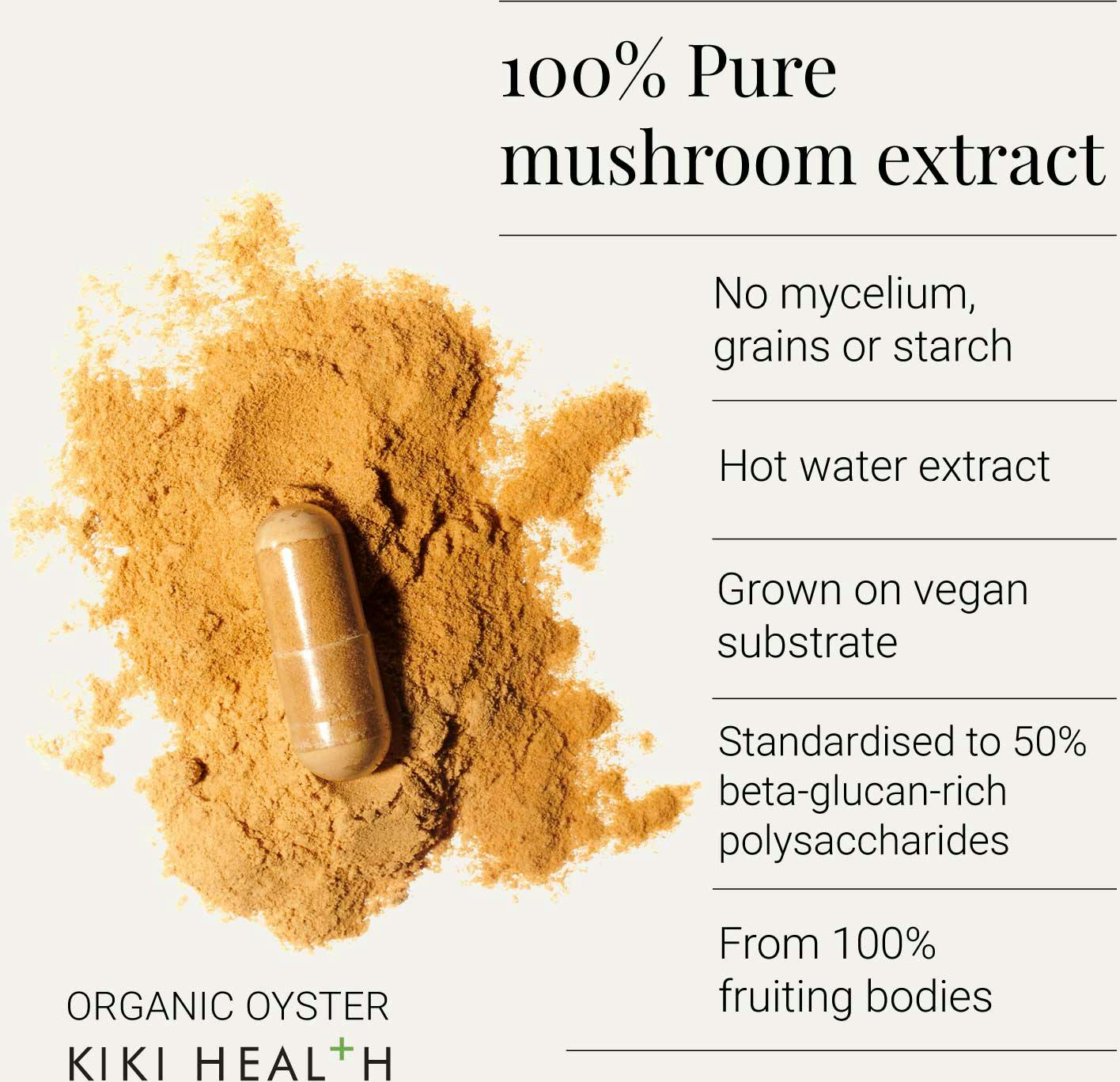 - KIKI Health Organic Oyster Extract Mushroom 60 Vegicaps are the high-quality mushroom supplement for immune system support