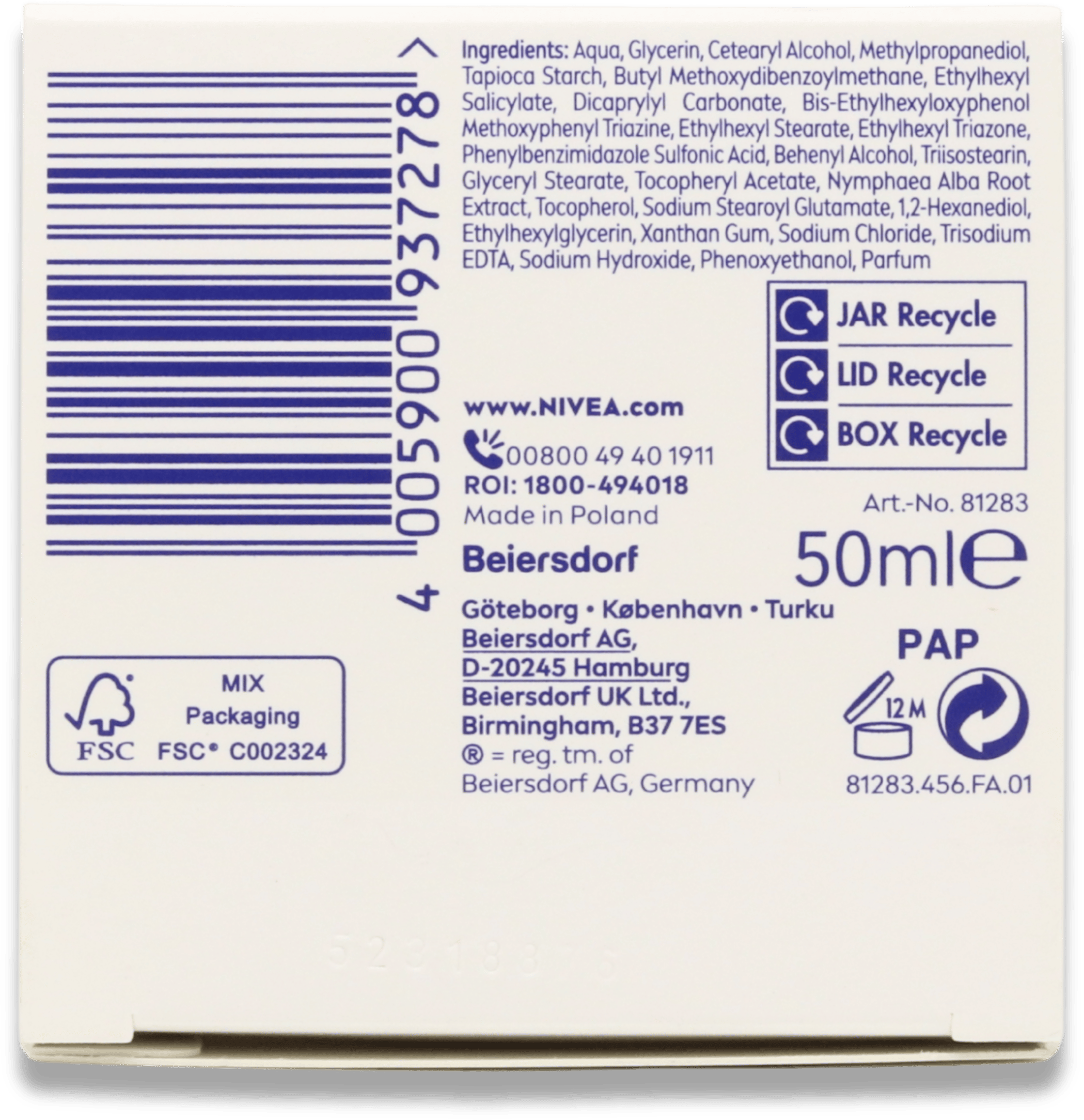 Nivea Refreshing Day Cream SPF30 50ml caters to a variety of skin types, providing 24-hour hydration to keep the skin soft and fresh. Enriched with Vitamin E and Waterlily, this cream offers protection against both the sun and daily stressors, ensuring your skin feels rejuvenated each day.