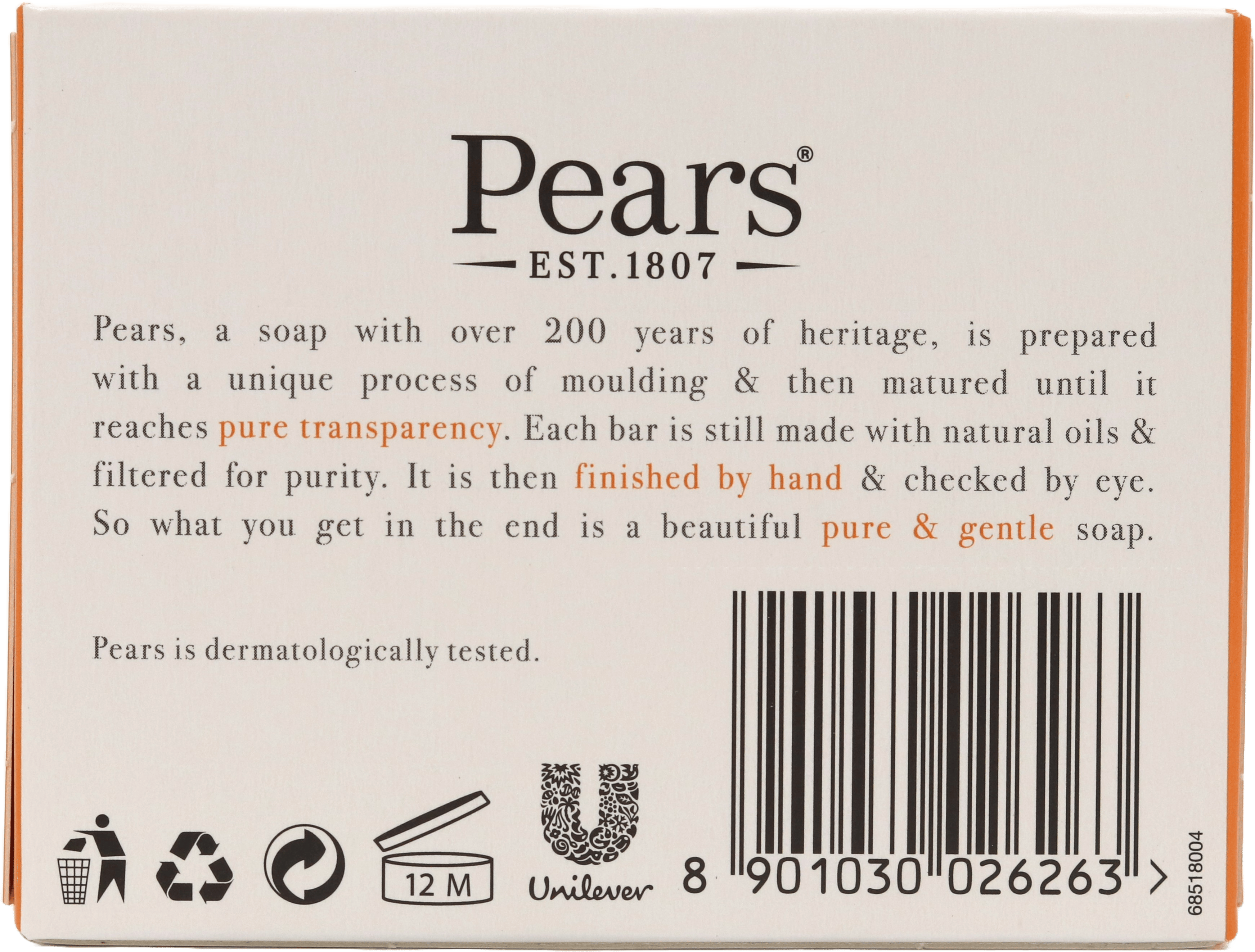 Lather up your Pears Transparent Soap Bar and massage the smooth, rich lather over your face and body enjoying the iconic fragrance of Pears. Rinse away with warm water and enjoy soft, clean skin.