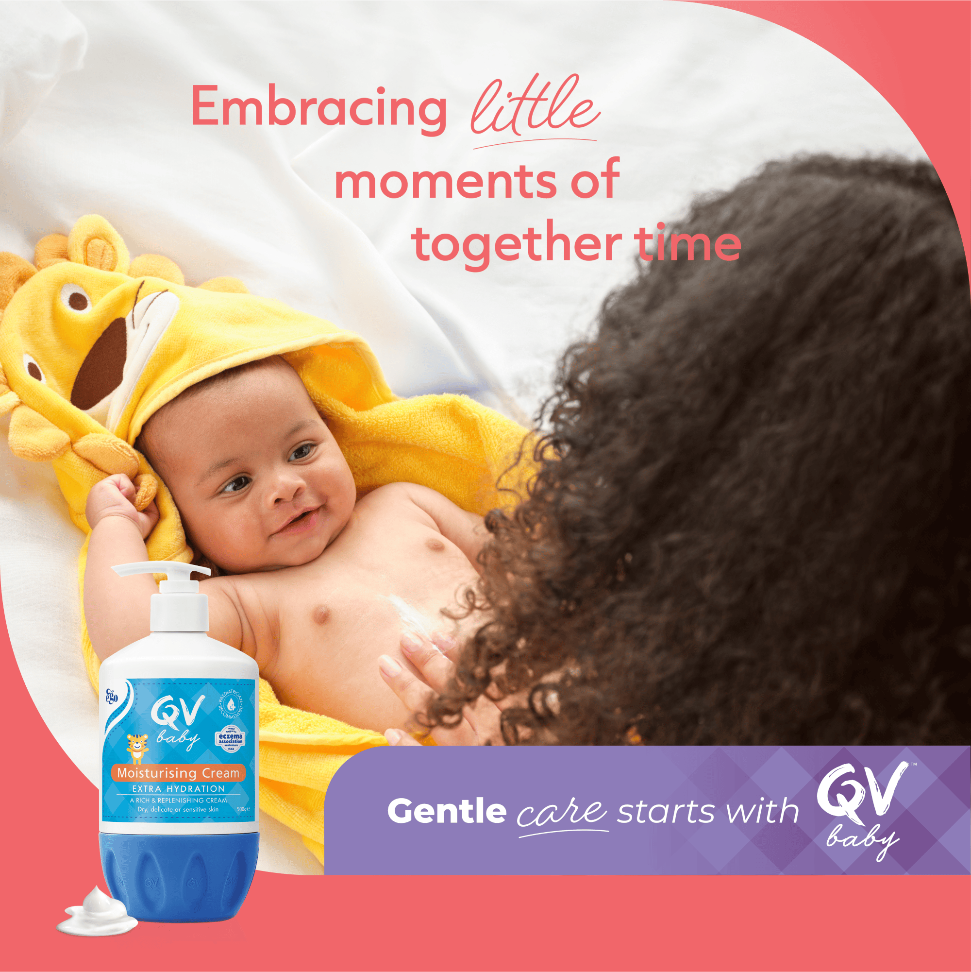Apply QV Baby Moisturising Cream as often as needed, especially after bathing or during nappy changes. For optimal results, use it at least once daily to maintain soft, hydrated skin. The cream offers 24-hour moisturisation, so a single application can last throughout the day.