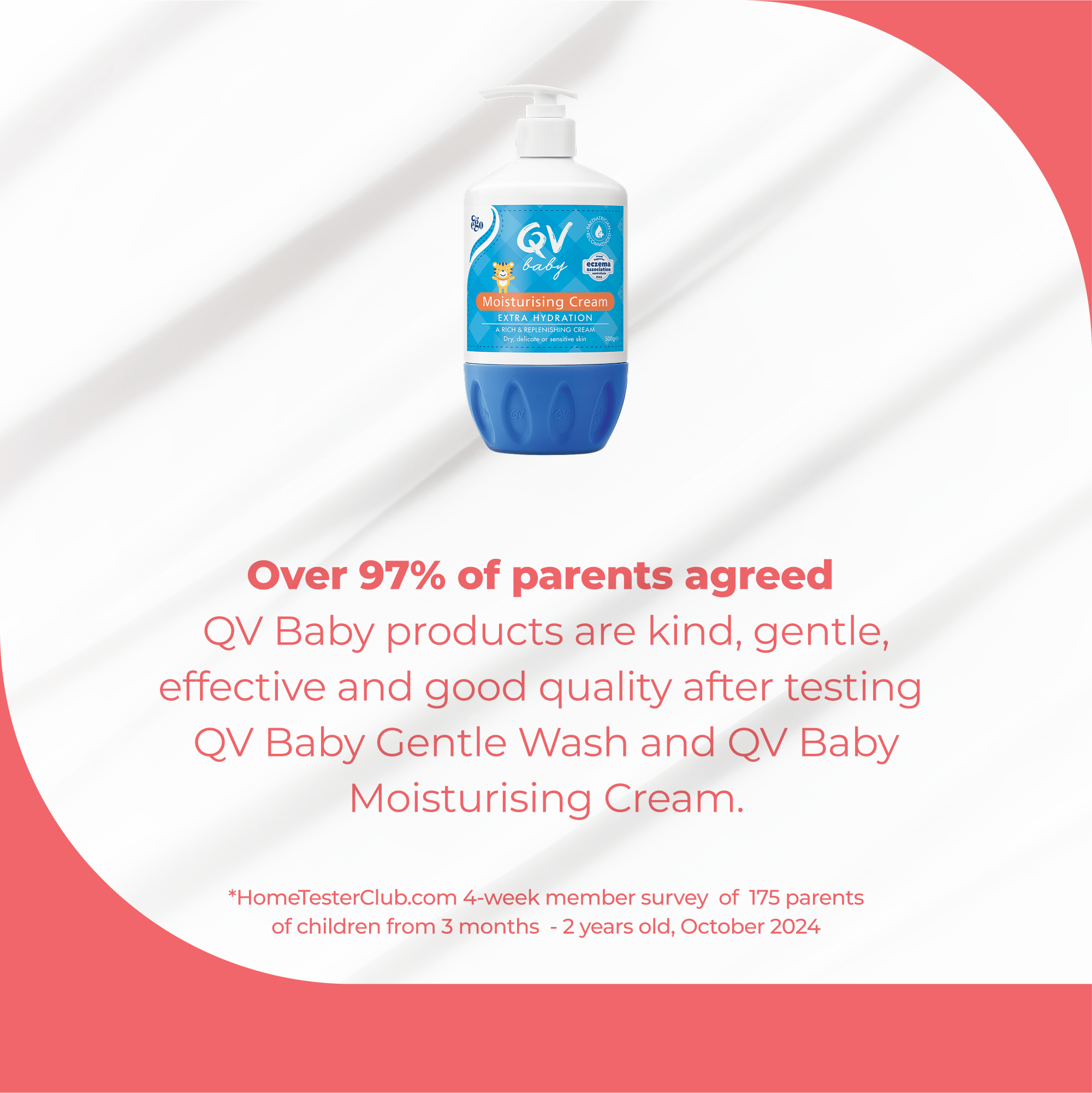 Yes, QV Baby Moisturising Cream is specifically designed to be suitable for eczema-prone skin. It’s free from common irritants and has been endorsed by the Eczema Association of Australia, making it a safe option for babies with sensitive or eczema-prone skin.