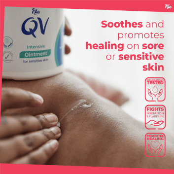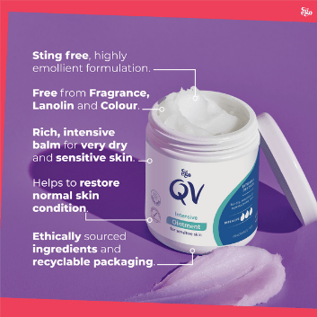 In addition to its efficacy in managing eczema-prone skin, QV Intensive Ointment also supports the skin in retaining moisture, promoting healing and restoring normal skin conditions. Its highly emollient, intensive balm texture ensures a comfortable application without causing stinging or discomfort on inflamed or cracked skin.