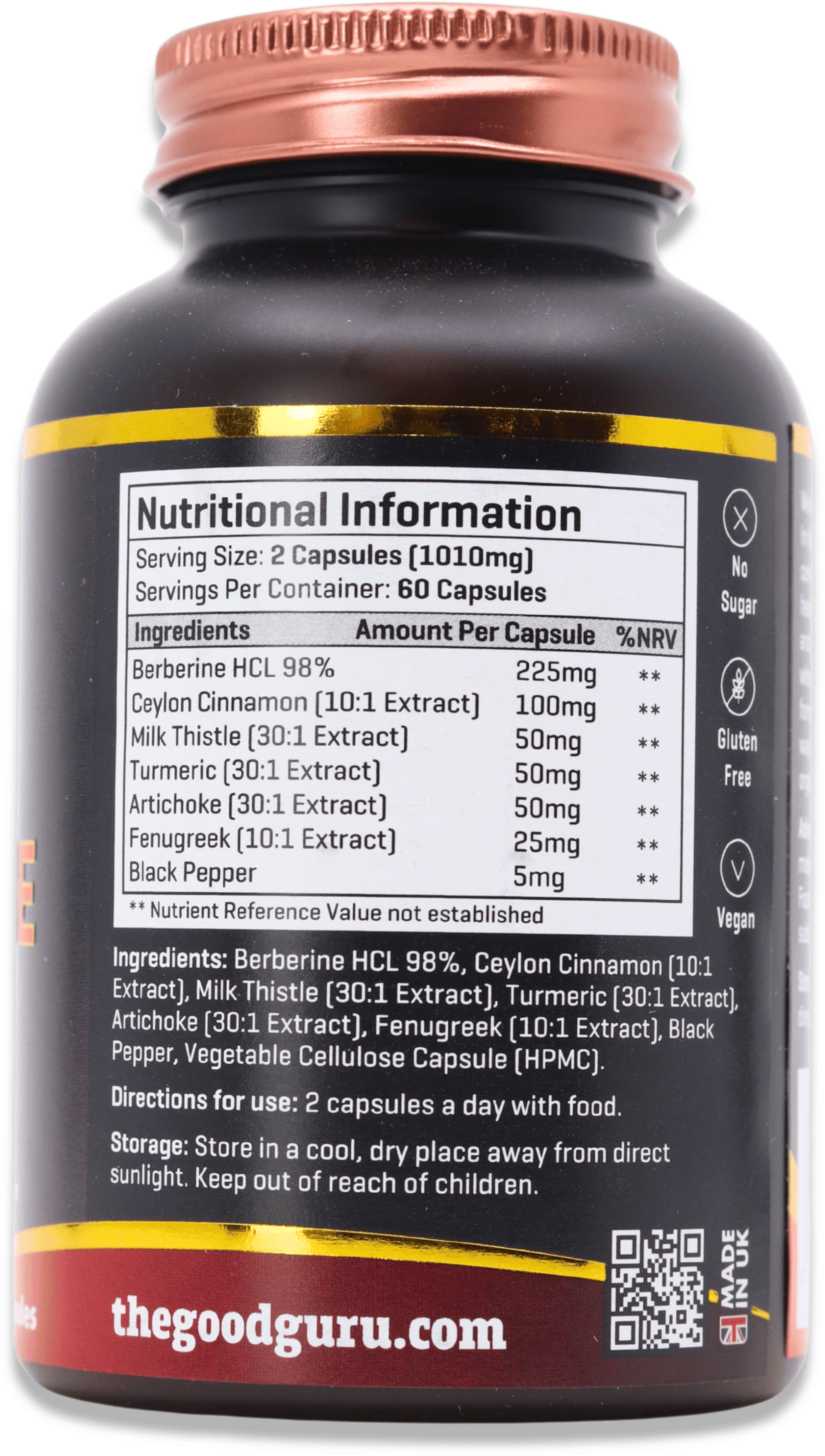 The Good Guru High Strength Berberine 98% HCL 60 Capsules is a supplement tailored to support blood sugar, weight, and heart health. It incorporates a blend of seven natural ingredients, such as Milk Thistle, Fenugreek, and Turmeric, to enhance the effects of Berberine. With a focus on research-backed benefits, Berberine is renowned for its ability to regulate blood sugar levels and promote a healthy metabolism. Individuals in search of a premium plant-based supplement aligned with their health objectives might discover that this product aligns with their needs.