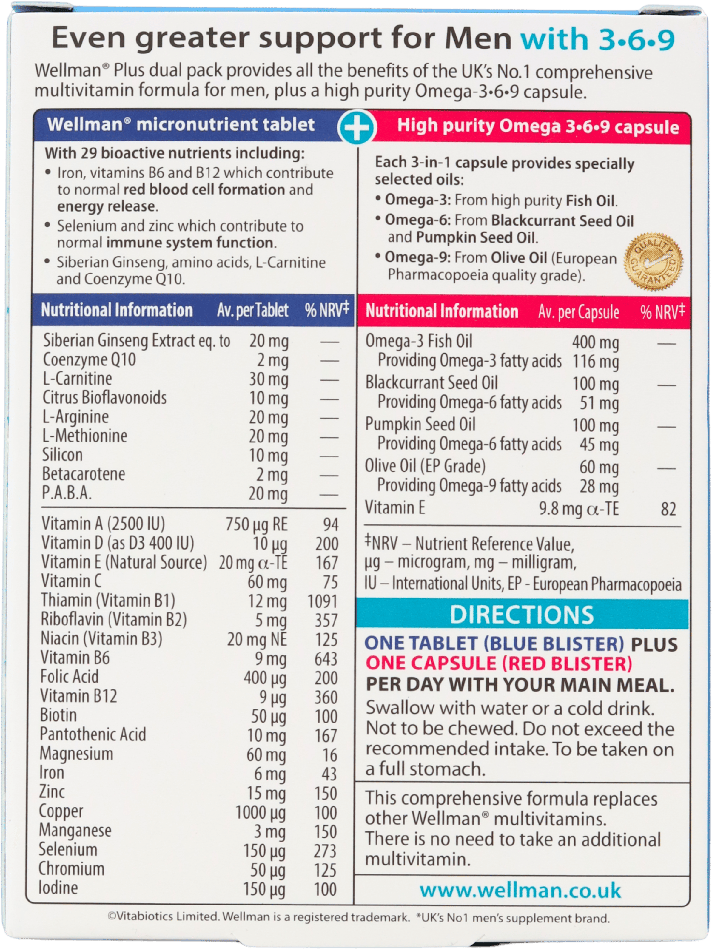 This combines our classic Wellman formula with Omega 3-6-9 capsules containing a range of specially selected oils.